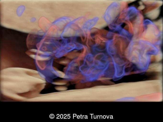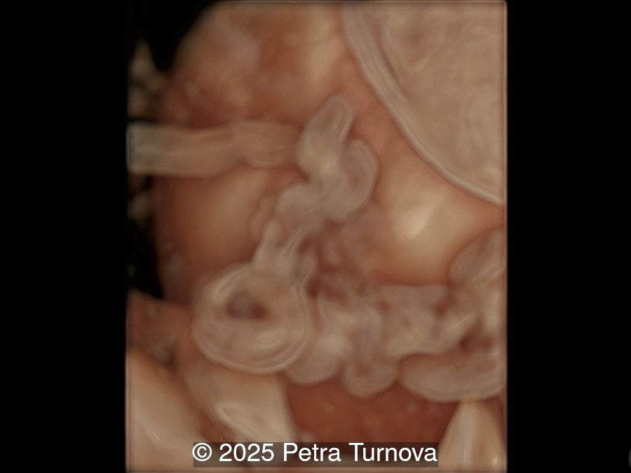 Our images revealed a monochorionic monoamniotic pregnancy with entanglement of the umbilical cords. Simultaneous doppler registrations of two different heart rates suggests the cord entanglement. There was no umbilical artery notching to suggest compromised blood flow to the fetuses. Three-dimensional reconstructions of the umbilical cord entanglement is depicted in the images below.
