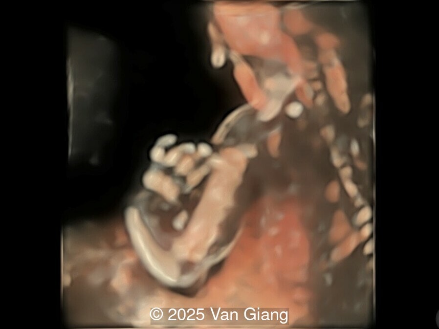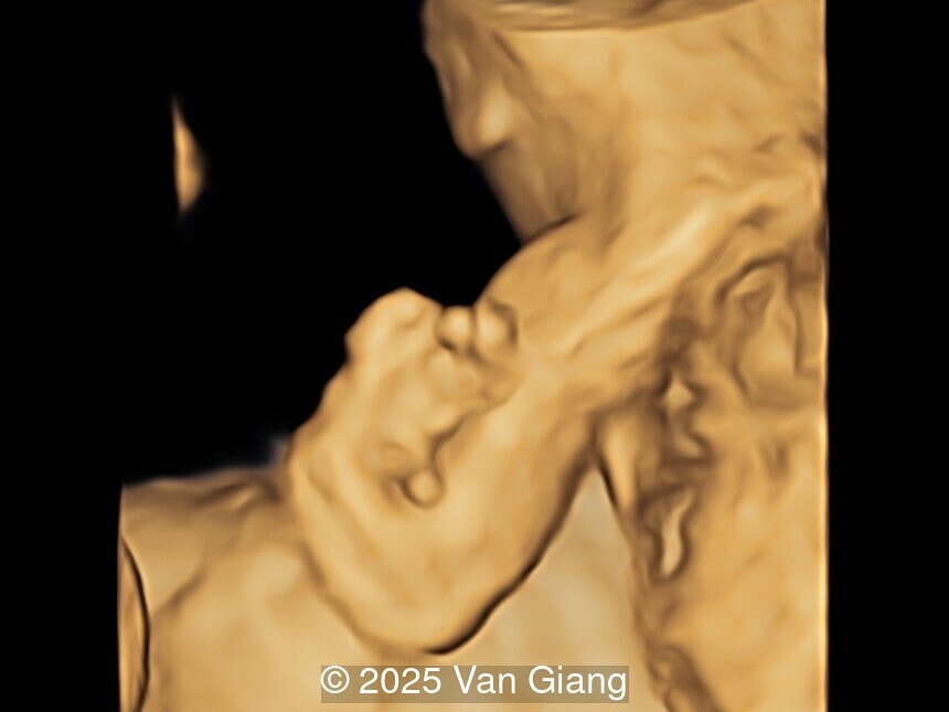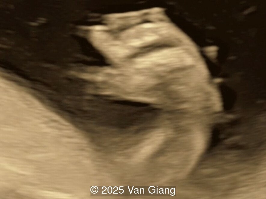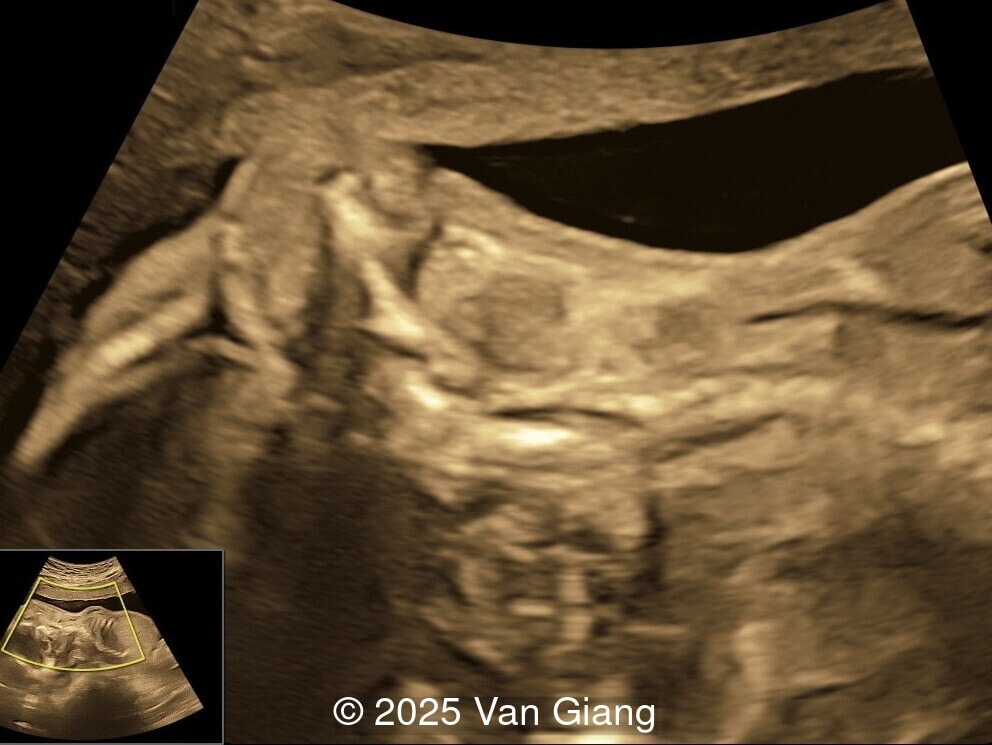 Ultrasound revealed severe mandibular and zygomatic hypoplasia, glossoptosis, cleft palate, and micrognathia with an abnormal facial profile. Both upper limbs showed radial ray sequence with abnormal thumbs and shortened forearms. Unilateral clubfoot was also noted. No major cardiac or visceral anomalies were observed. Based on these findings, Nager syndrome was suspected.